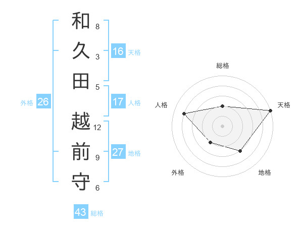 和久田 越前守さんを姓名の画数から五運を鑑定