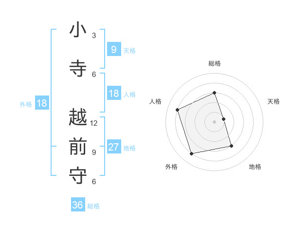 小寺 越前守さんを姓名の画数から五運を鑑定