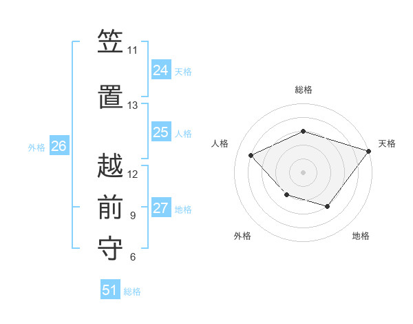 笠置 越前守さんの総格は51画の3点!