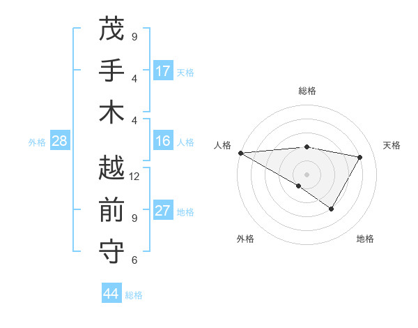 茂手木 越前守さんの天格は17画の4点!