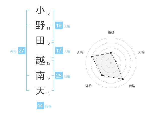 小野田 越南天さんを姓名の画数から五運を鑑定