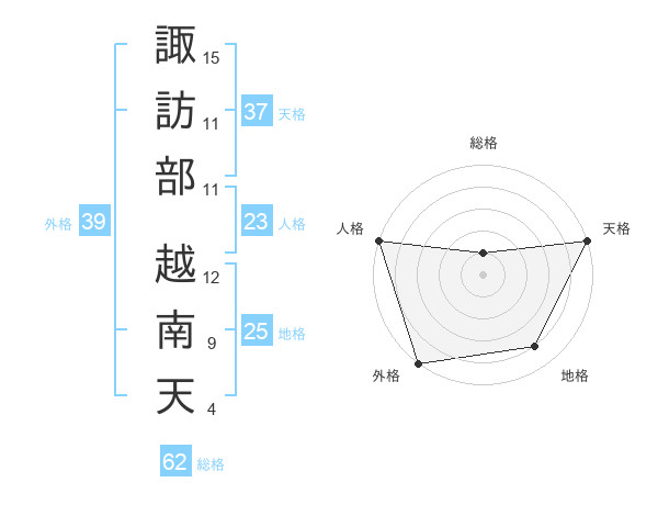 諏訪部 越南天さんを姓名の画数から五運を鑑定