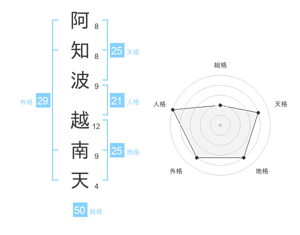 阿知波 越南天さんを姓名の画数から五運を鑑定