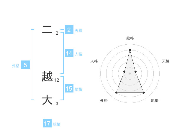 二 越大さんの総格は17画の4点!