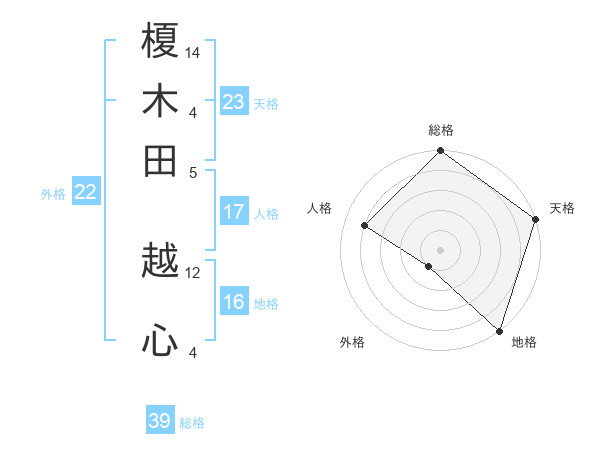 榎木田 越心さんを姓名の画数から五運を鑑定