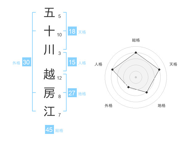 五十川 越房江さんを姓名の画数から五運を鑑定