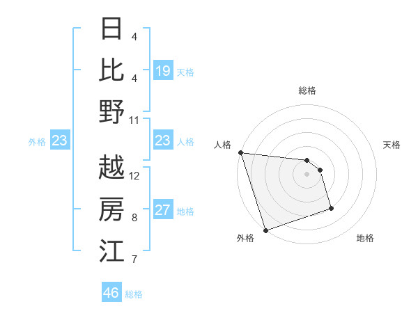日比野 越房江さんを姓名の画数から五運を鑑定
