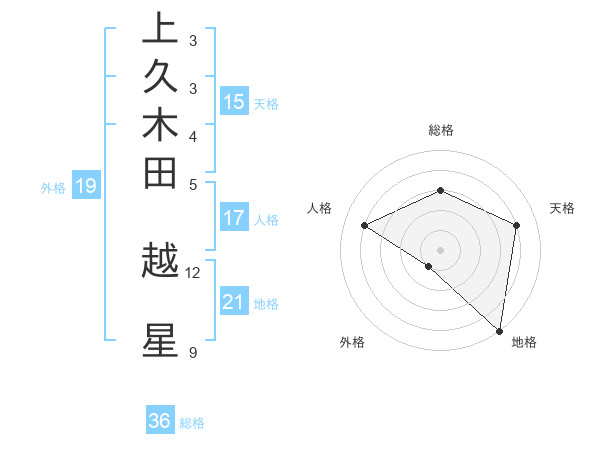 上久木田 越星さんの天格は15画の4点!