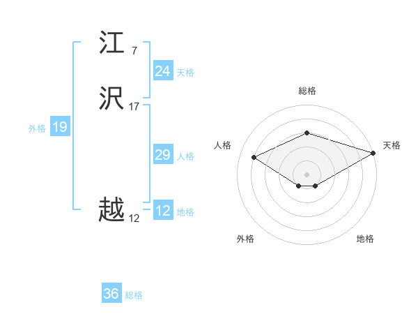 江沢 越さんの天格は24画の5点!
