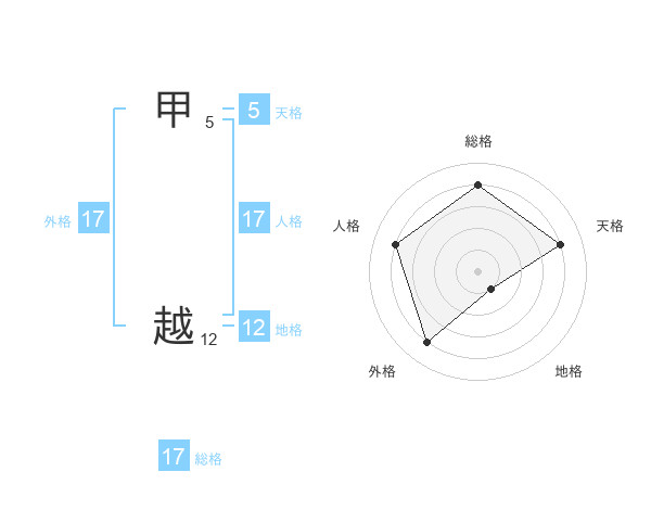 甲 越さんの外格は17画の4点!