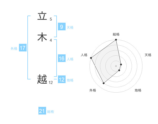 立木 越さんの総格は21画の5点!