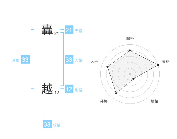 轟 越さんの外格は33画の4点!