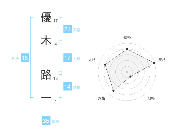 優木 路一さんの総格は35画の4点!