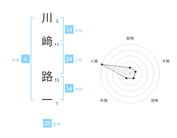 川﨑 路一さんを姓名の画数から五運を鑑定
