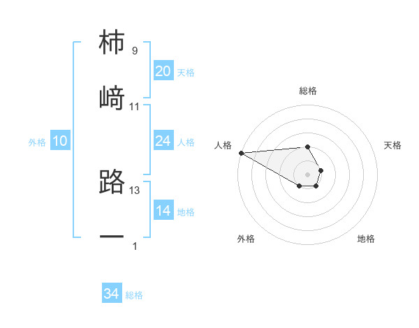 柿﨑 路一さんの総格は34画の2点!