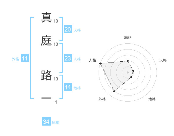 真庭 路一さんの人格は23画の5点!