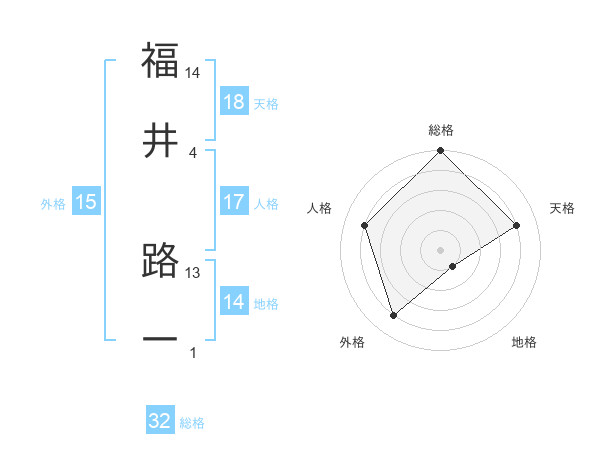 福井 路一さんの総格は32画の5点!