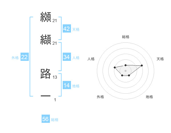 纐纈 路一さんの総格は56画の1点!