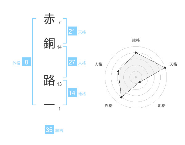 赤銅 路一さんを姓名の画数から五運を鑑定