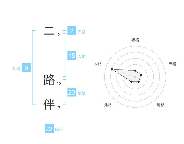 二 路伴さんの総格は22画の1点!