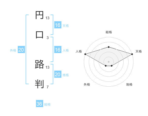 円口 路判さんの天格は16画の5点!