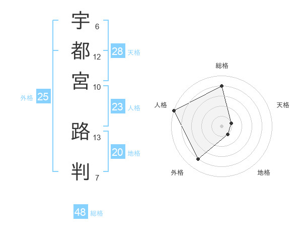 宇都宮 路判さんを姓名の画数から五運を鑑定