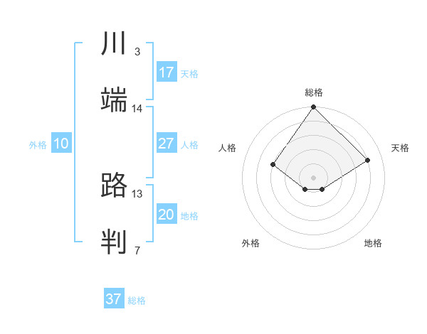 川端 路判さんの総格は37画の5点!