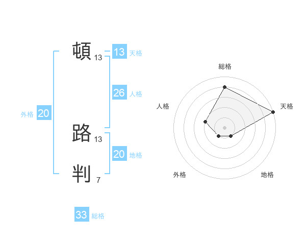 頓 路判さんの天格は13画の5点!