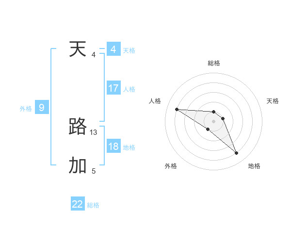 天 路加さんの総格は22画の1点!