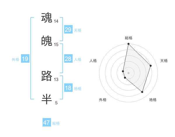 魂魄 路半さんを姓名の画数から五運を鑑定