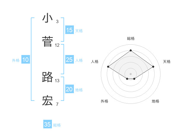小菅 路宏さんの総格は35画の4点!
