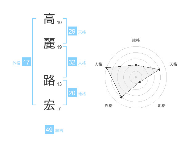 高麗 路宏さんを姓名の画数から五運を鑑定