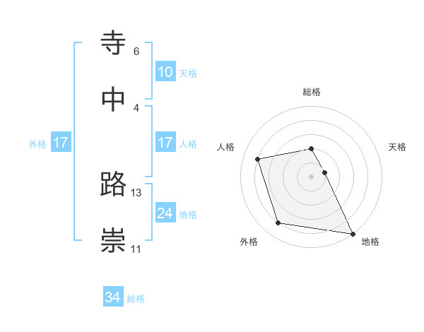 寺中 路崇さんの総格は34画の2点!