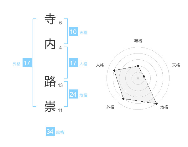 寺内 路崇さんを姓名の画数から五運を鑑定