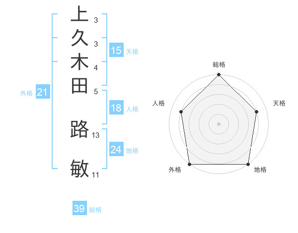 上久木田 路敏さんを姓名の画数から五運を鑑定