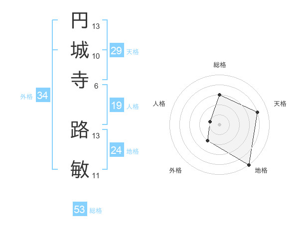 円城寺 路敏さんの総格は53画の3点!