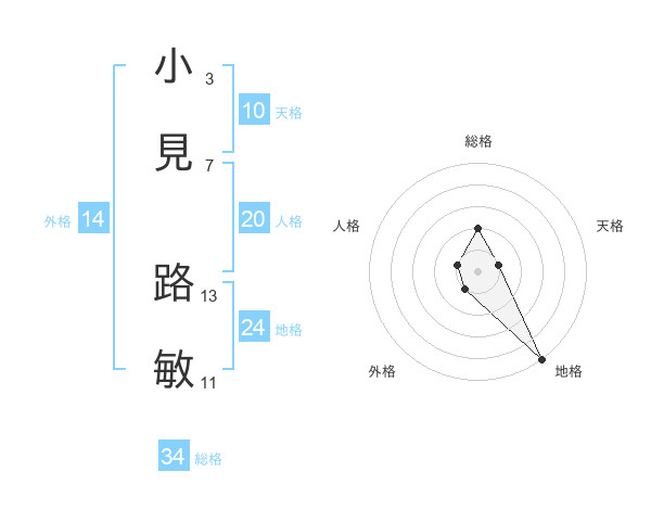 小見 路敏さんの総格は34画の2点!