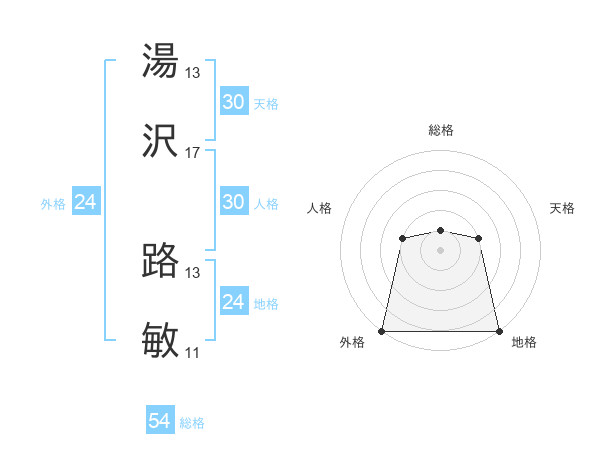 湯沢 路敏さんの外格は24画の5点!