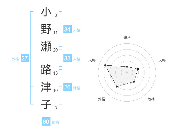 小野瀬 路津子さんの総格は60画の1点!
