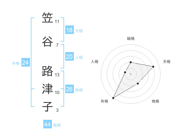 笠谷 路津子さんを姓名の画数から五運を鑑定