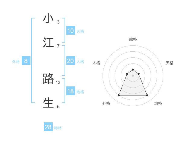 小江 路生さんの総格は28画の1点!