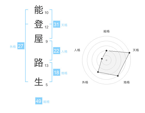 能登屋 路生さんの総格は49画の2点!