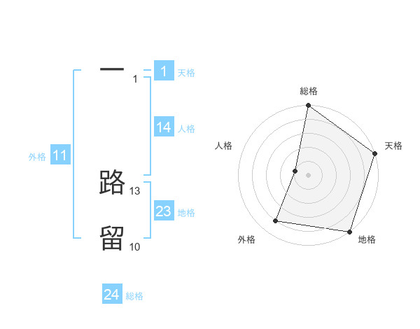 一 路留さんの総格は24画の5点!