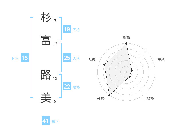 杉富 路美さんの外格は16画の5点!
