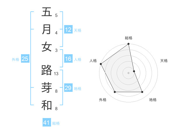 五月女 路芽和さんを姓名の画数から五運を鑑定