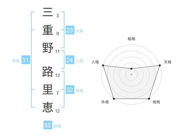 三重野 路里恵さんの外格は31画の5点!