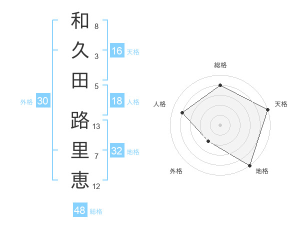 和久田 路里恵さんを姓名の画数から五運を鑑定