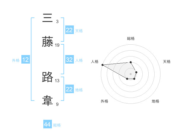三藤 路韋さんの総格は44画の2点!