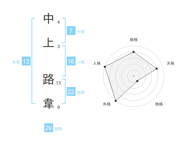 中上 路韋さんの外格は13画の5点!
