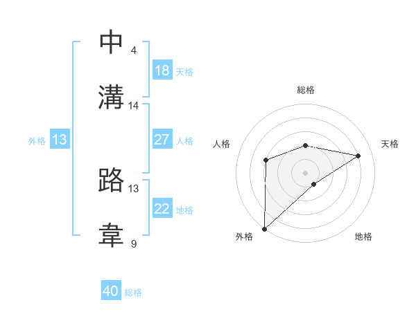 中溝 路韋さんの外格は13画の5点!